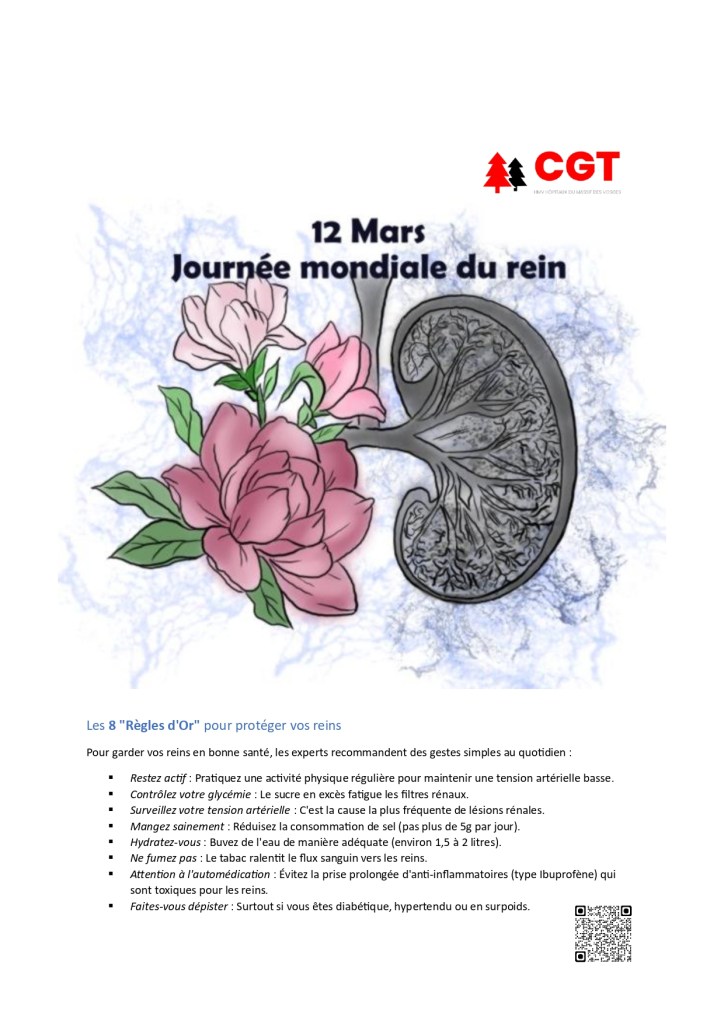 - 12 mars : Journée mondiale du rein